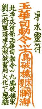 3.1 This charm is used to protect a house against evil influences. It is written on red paper and stick on a wall:-