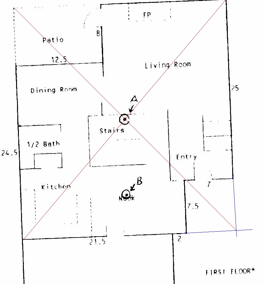 Yes, it is easy to confirm that point A is considered the center-point of your house. (See attached confirmation sketch).