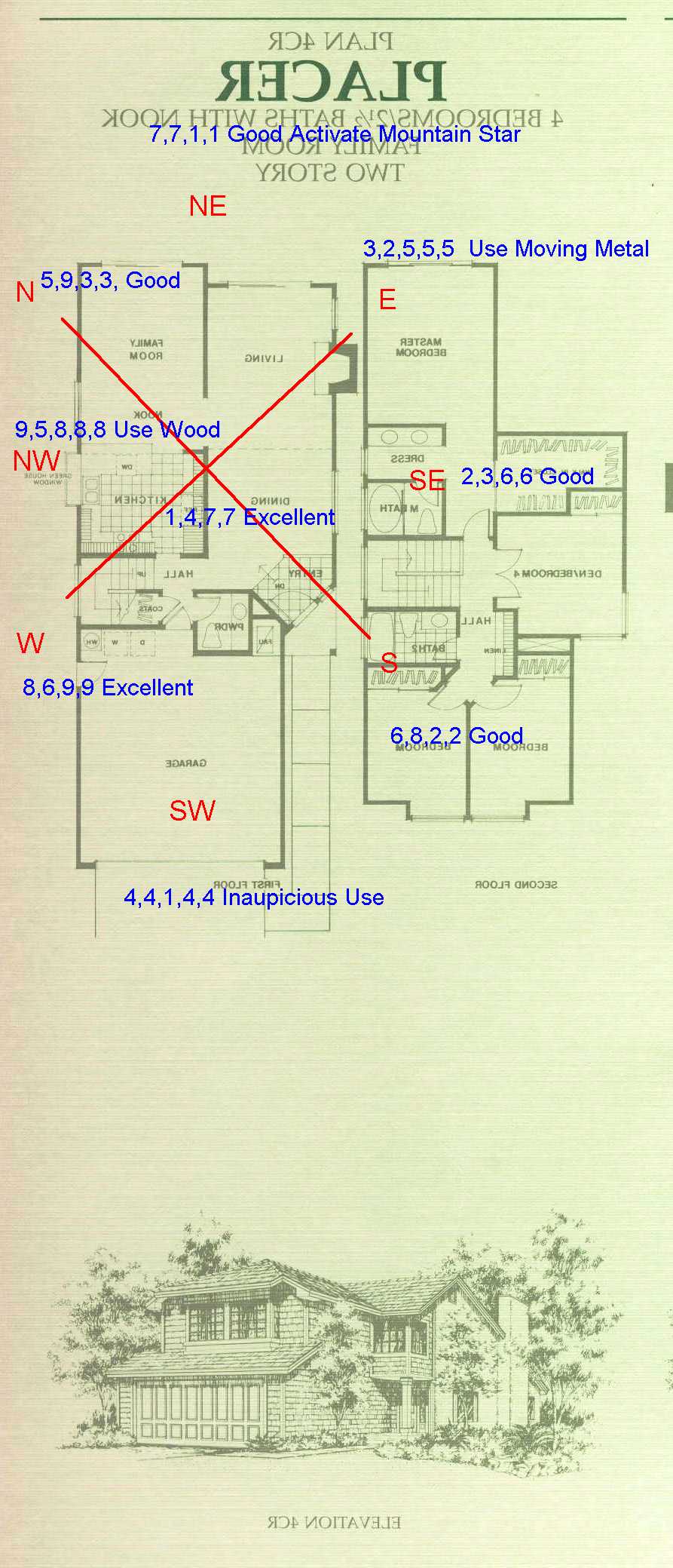 I attached the layout with the compass directions and flying star number for each of the directions on the 1st Floor.