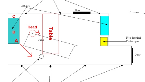 This plan also shows marking `A'. Where possible, if you are still maintaining the exisiting layout of your table, try to make sure that the corner of the cabinet marked as `A' does not cause a poison arrow to you.